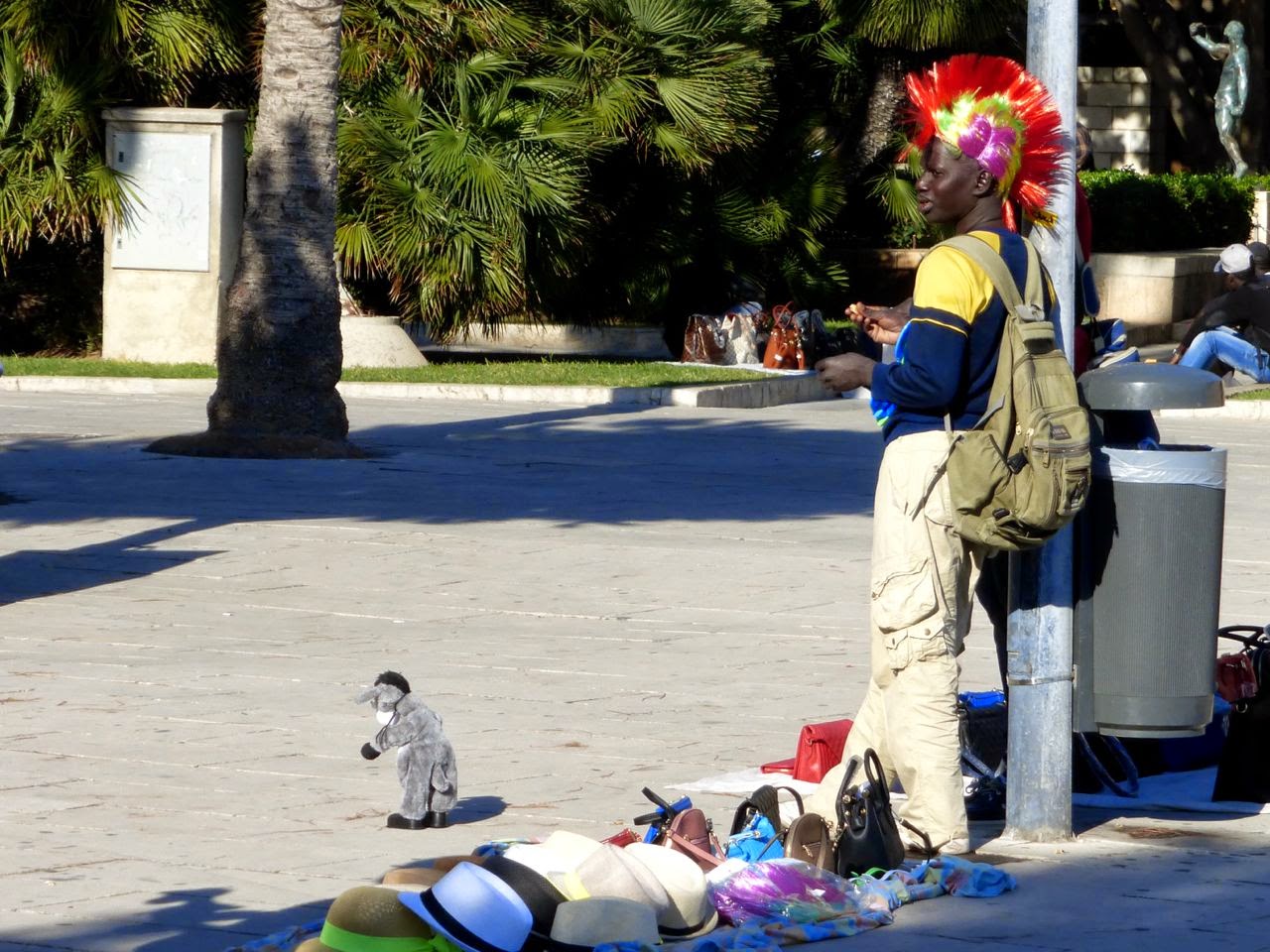 Near the cathedral, Africans, who've managed to survive the Mediterranean crossing, sell knock-off handbags. Europe doesn't want them and doesn't know what to do with them. One of the many tragedies of our time.